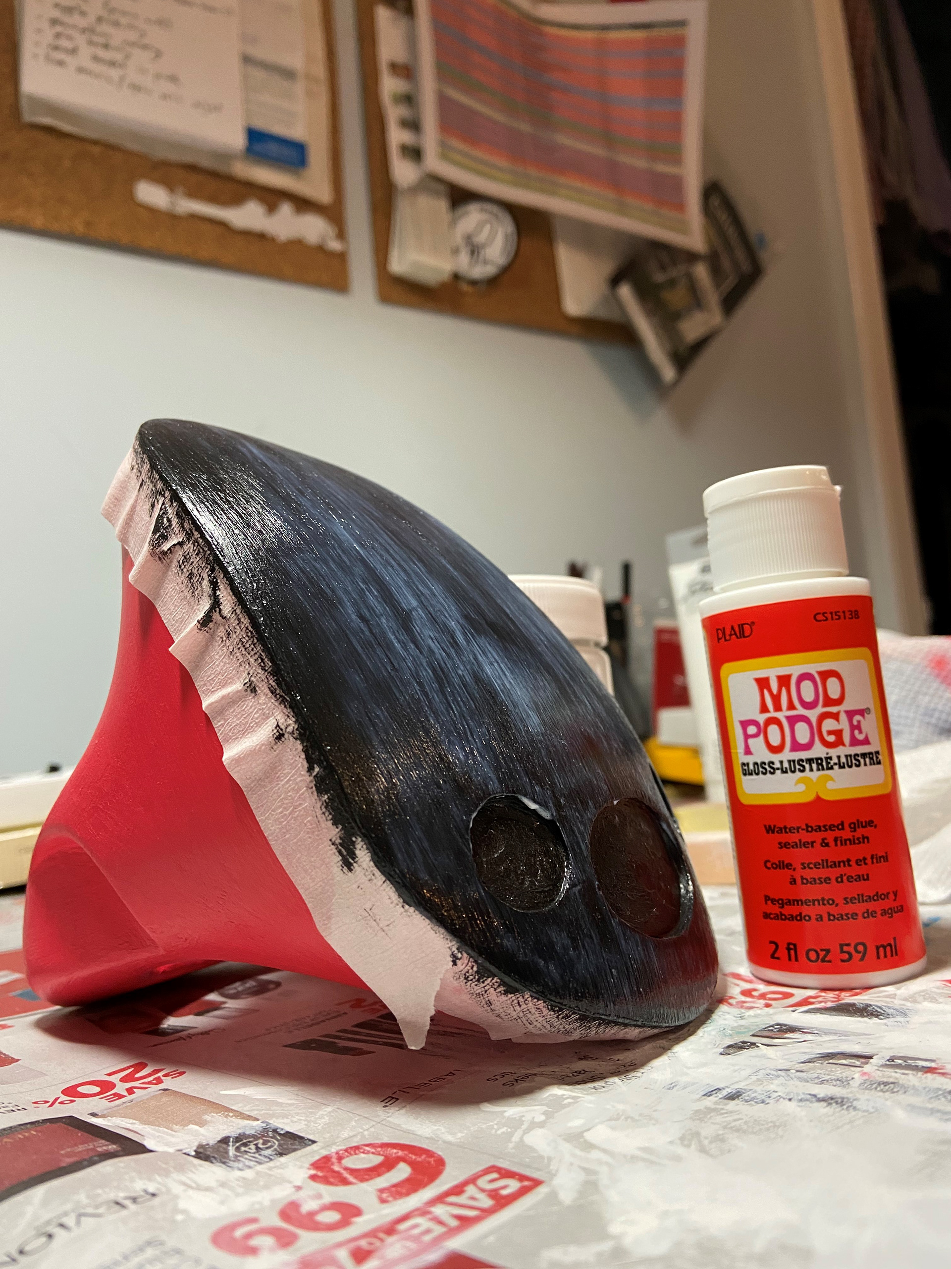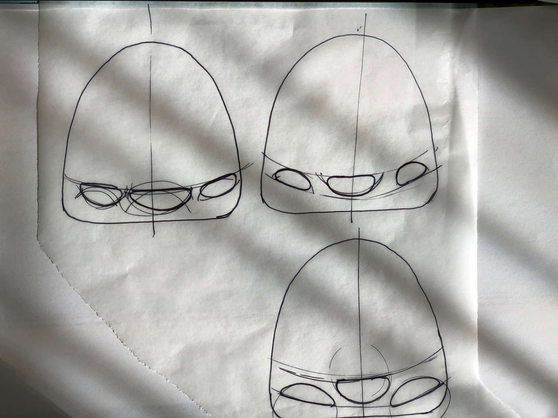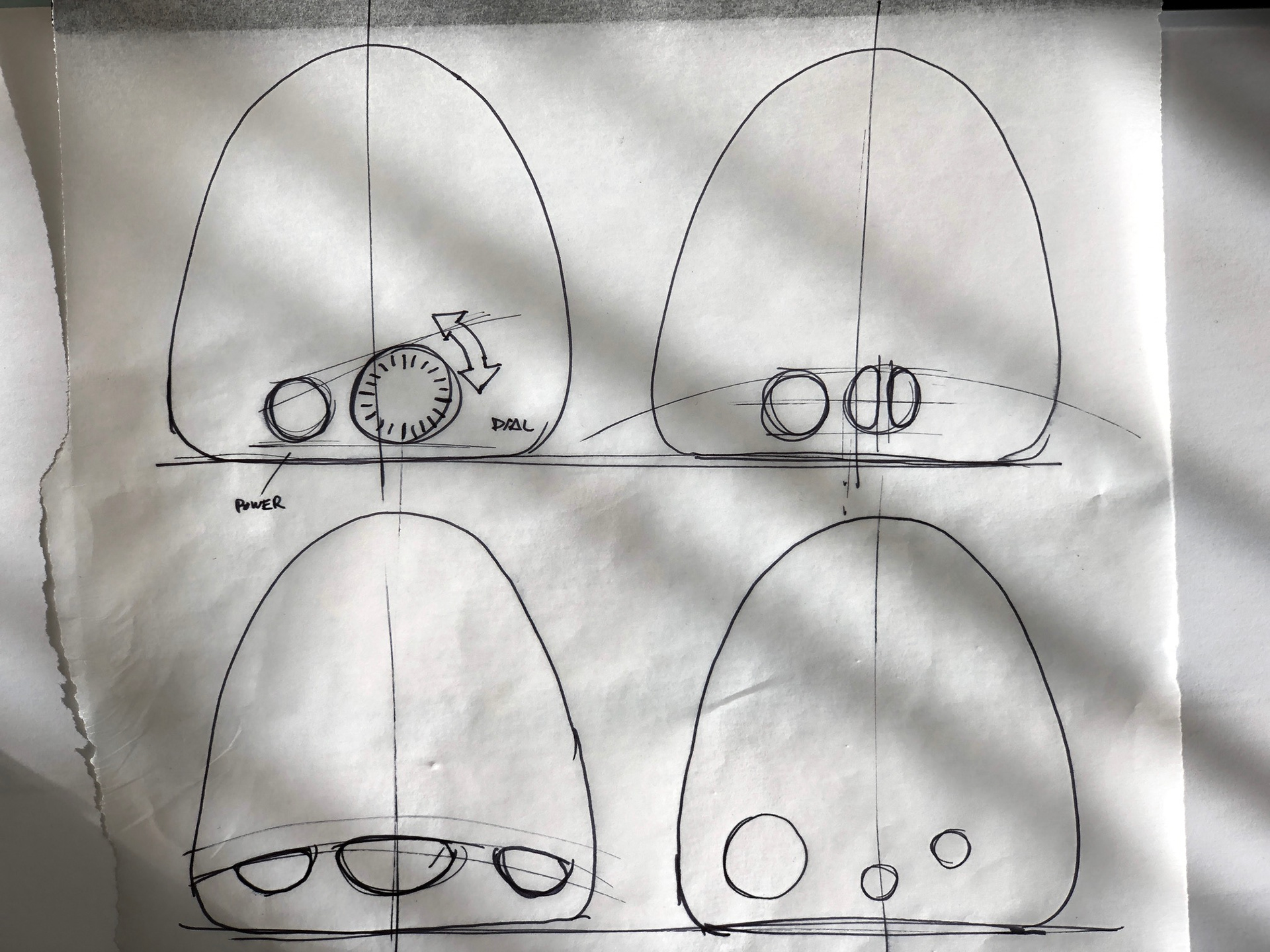 The model-making process had some unique challenges. One of these was due to a workshop error. As this project was completed without direct access to workshop facilities, the model had to be made at home. Some rough cuts were made on the urethane foam block by the workshop remotely, but as can be seen in the first and second images, the front face was cut upside down. This presented itself as a chance to revisit the form design, and the material removal and edge rounding that occurred as a result provided a much better aesthetic overall. The CAD file was then reworked to reflect the changes, and the final design was improved in the end by the error.