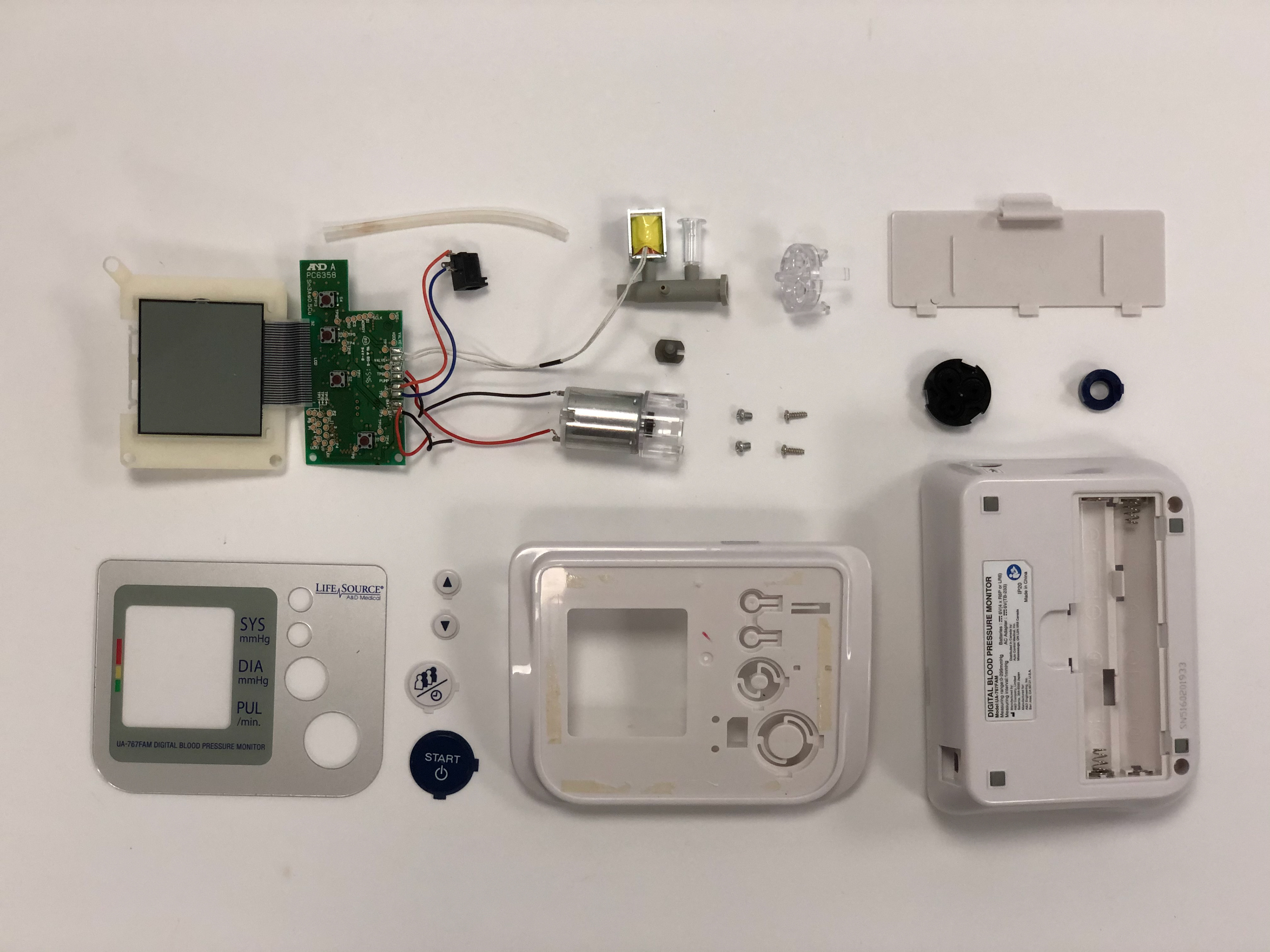 As a small group, an existing digital blood pressure monitor was analyzed. The group went through use, storage, and interface analysis. The product was also taken apart to determine how it worked, the necessary components, and their placement. These findings were used to determine current design strengths and weaknesses, and product dimensions.