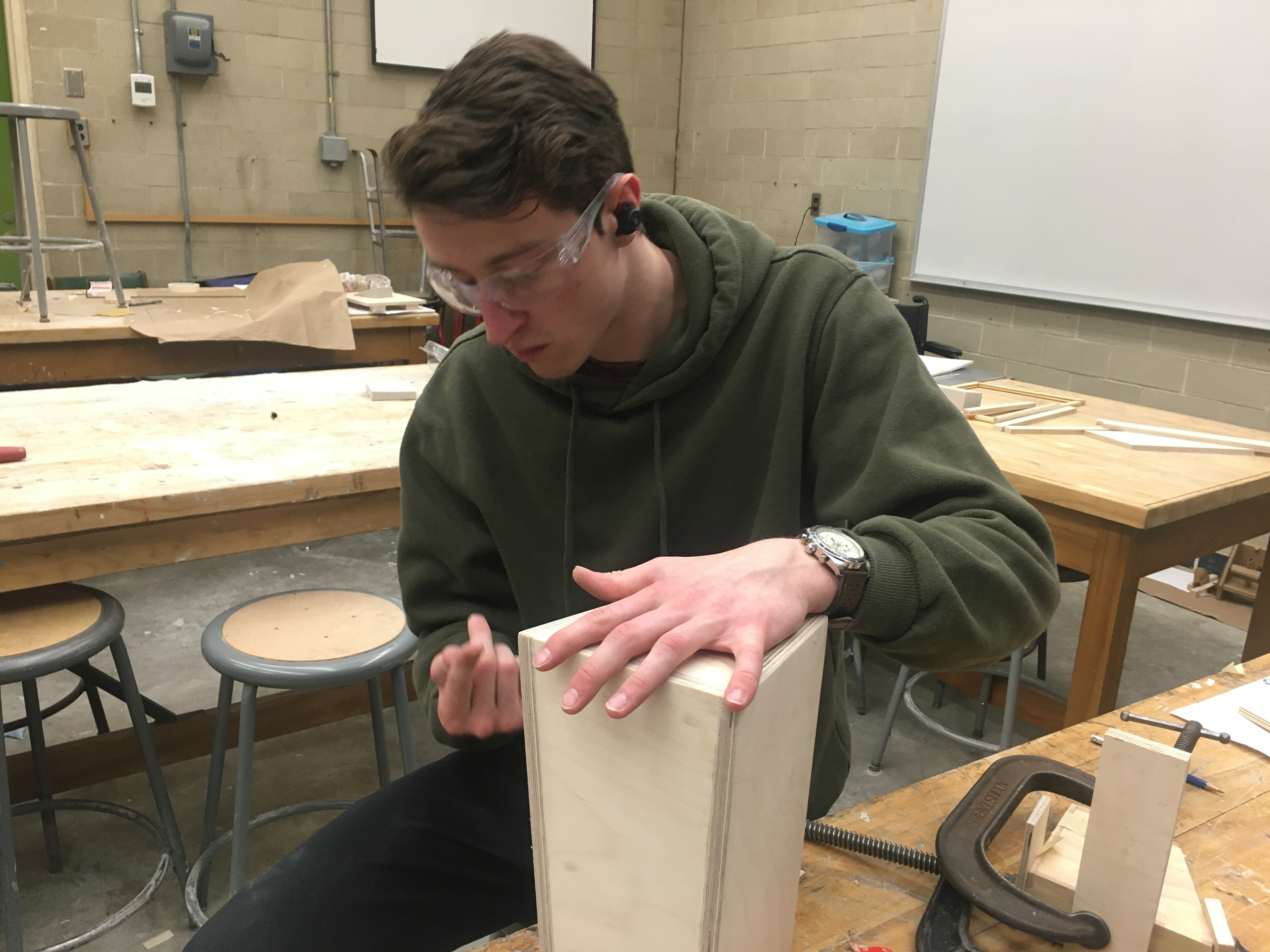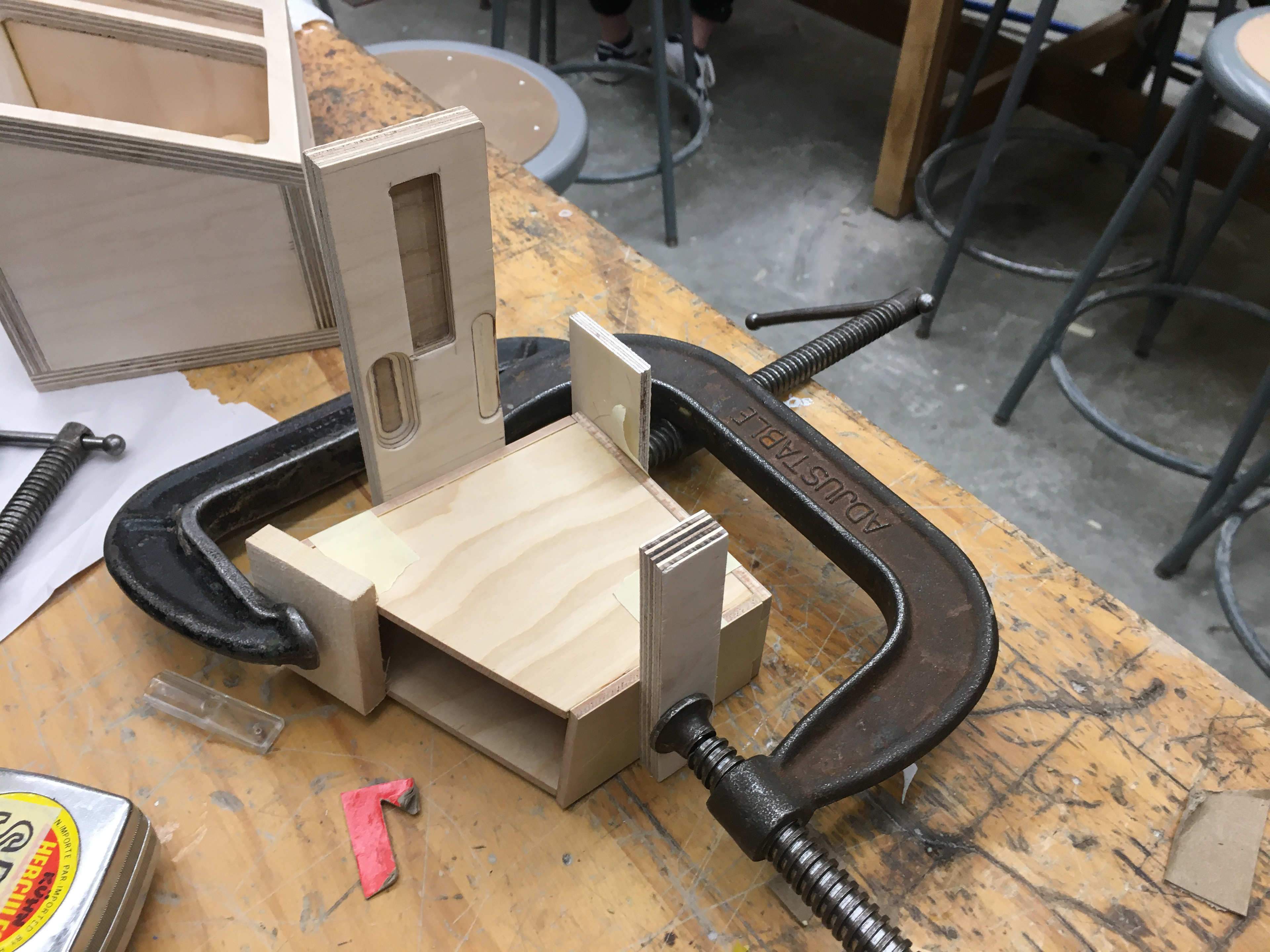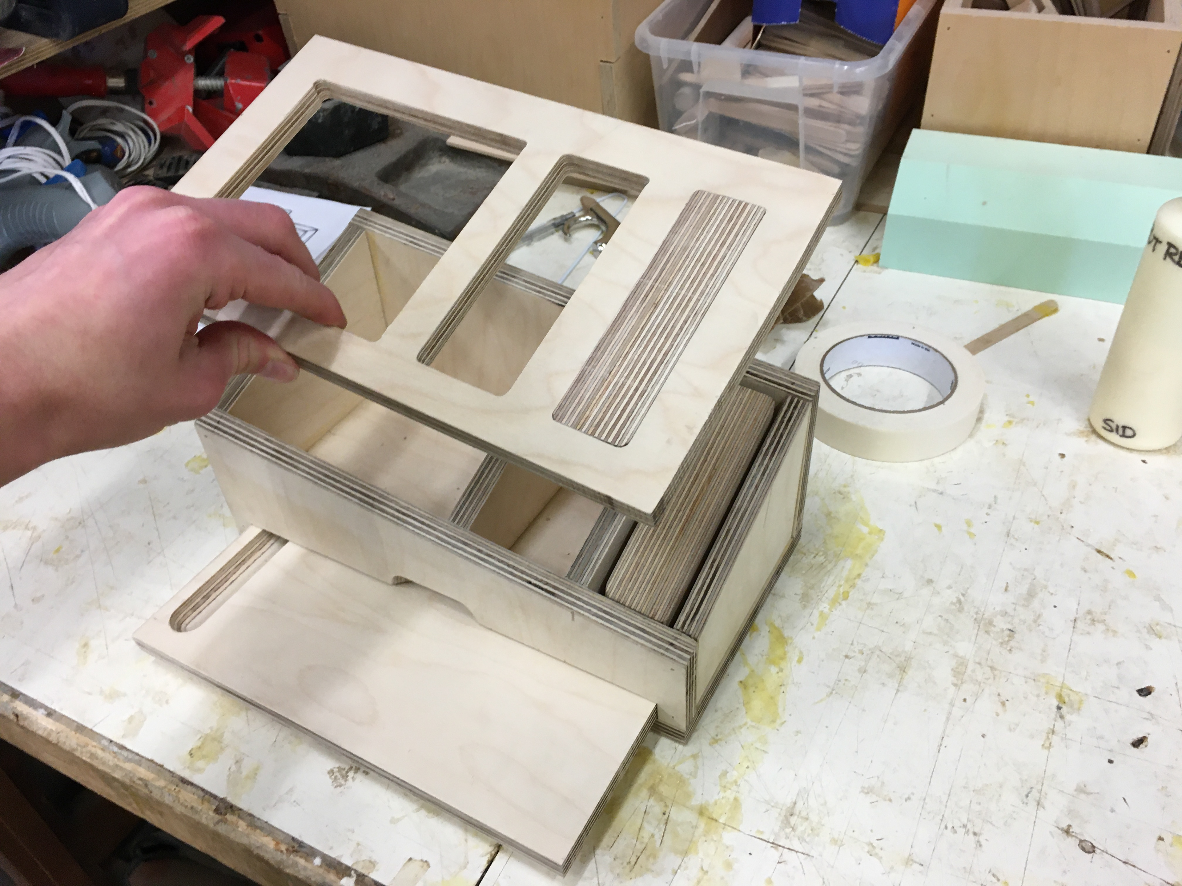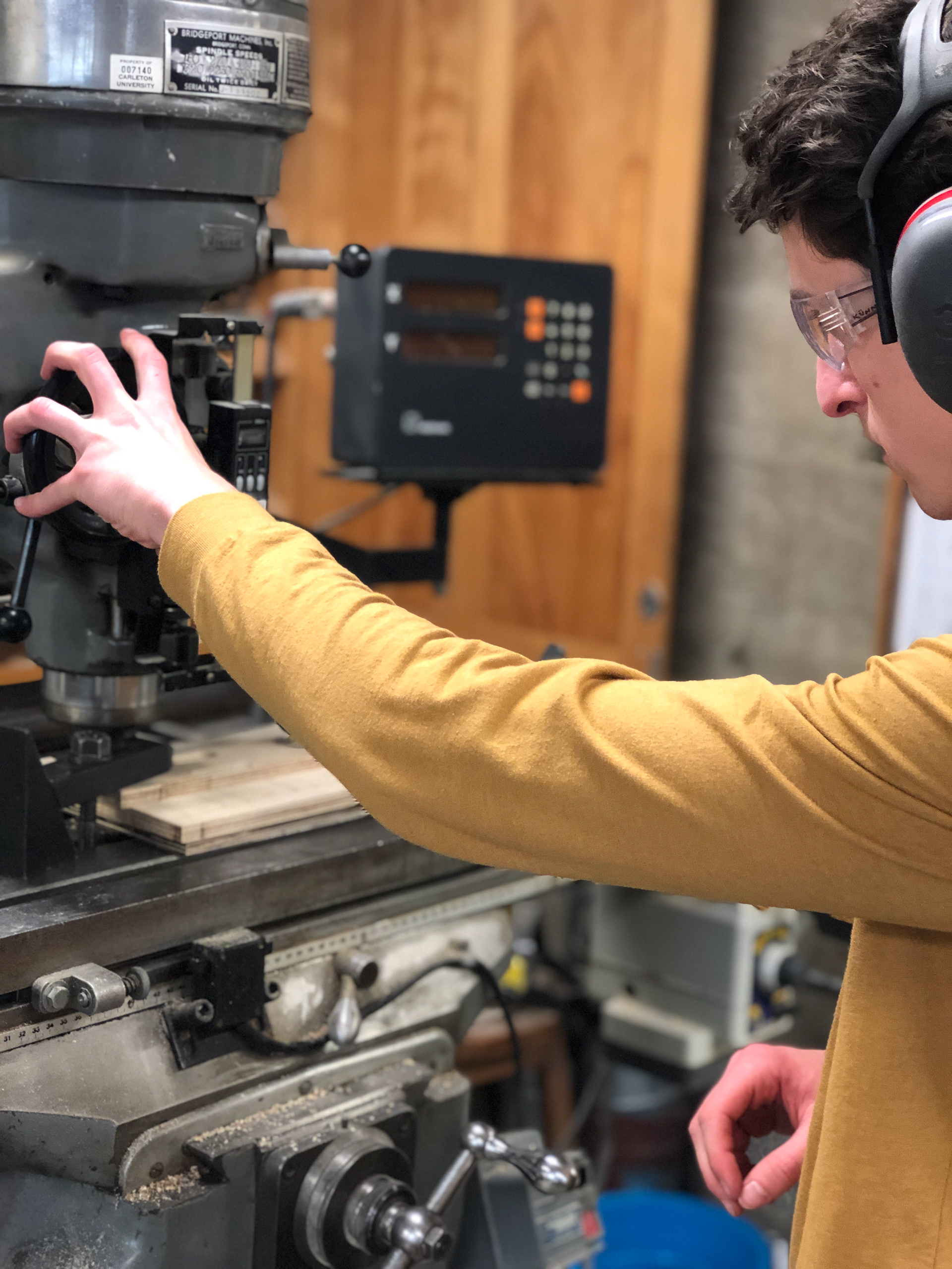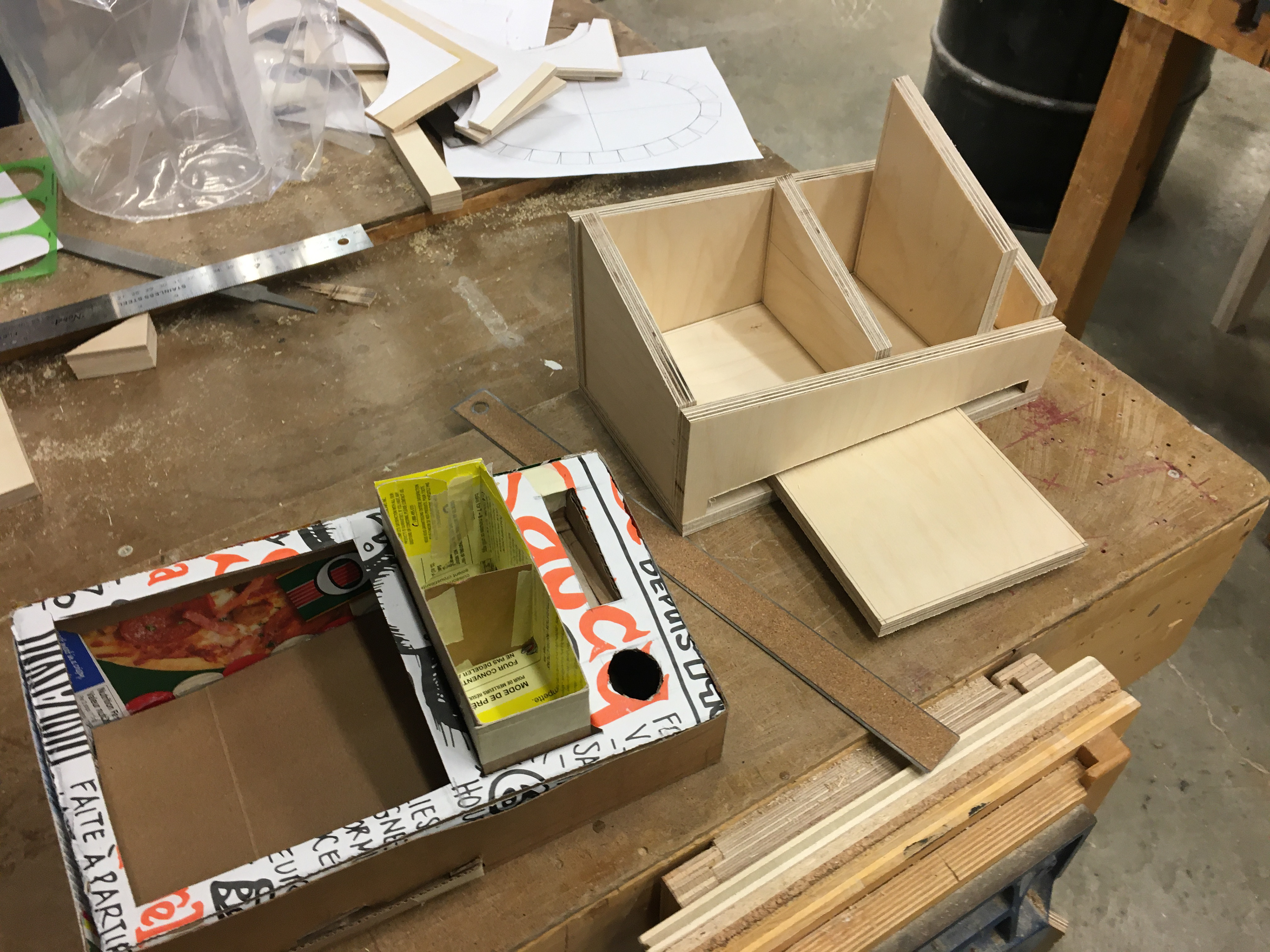 The modelmaking process was a challenge as the top piece required many complex cut angles. The product came together over the span of a few days. It was made using a bandsaw, table saw, drill press, milling machine, and several hand tools and sanders.