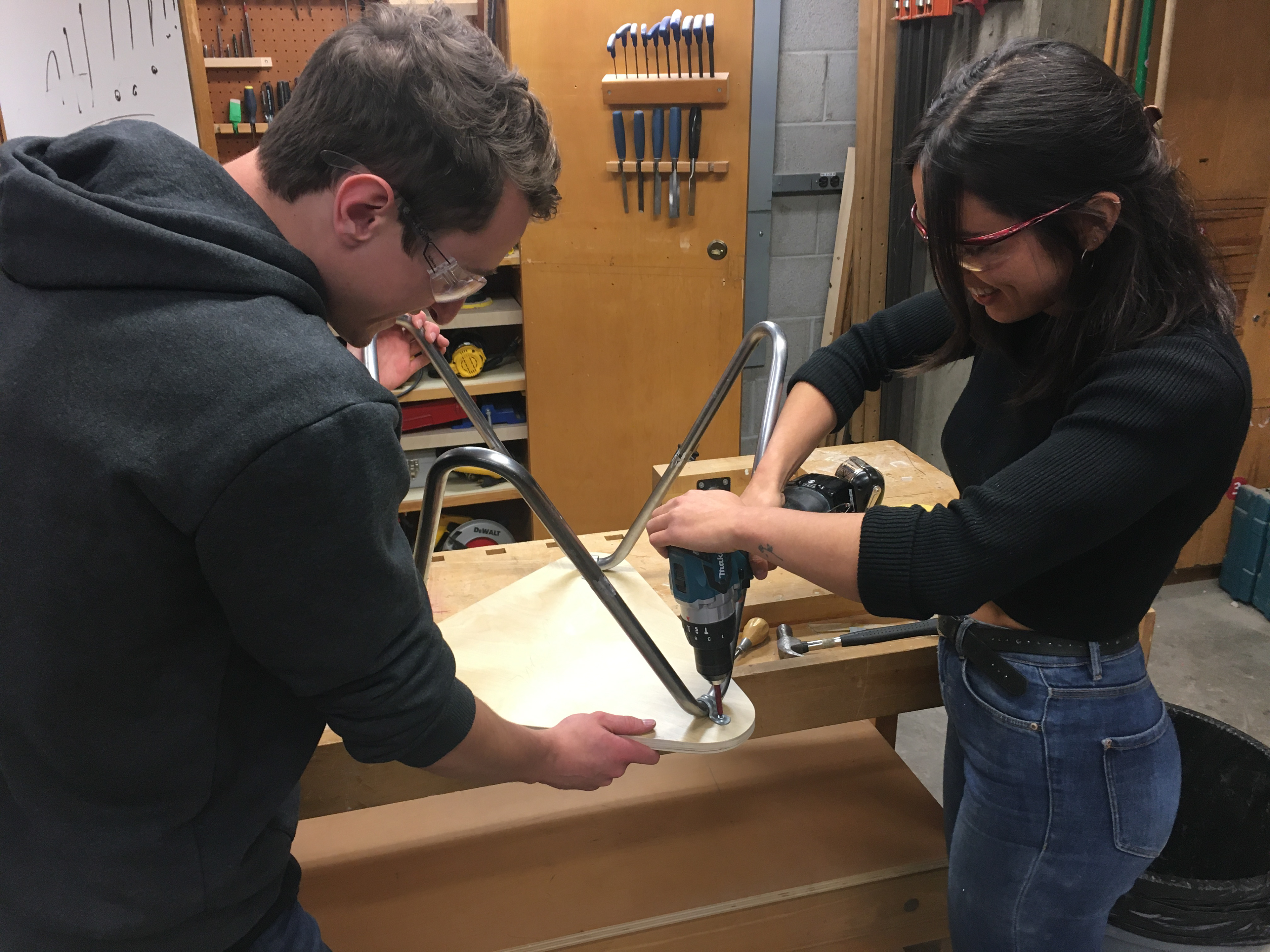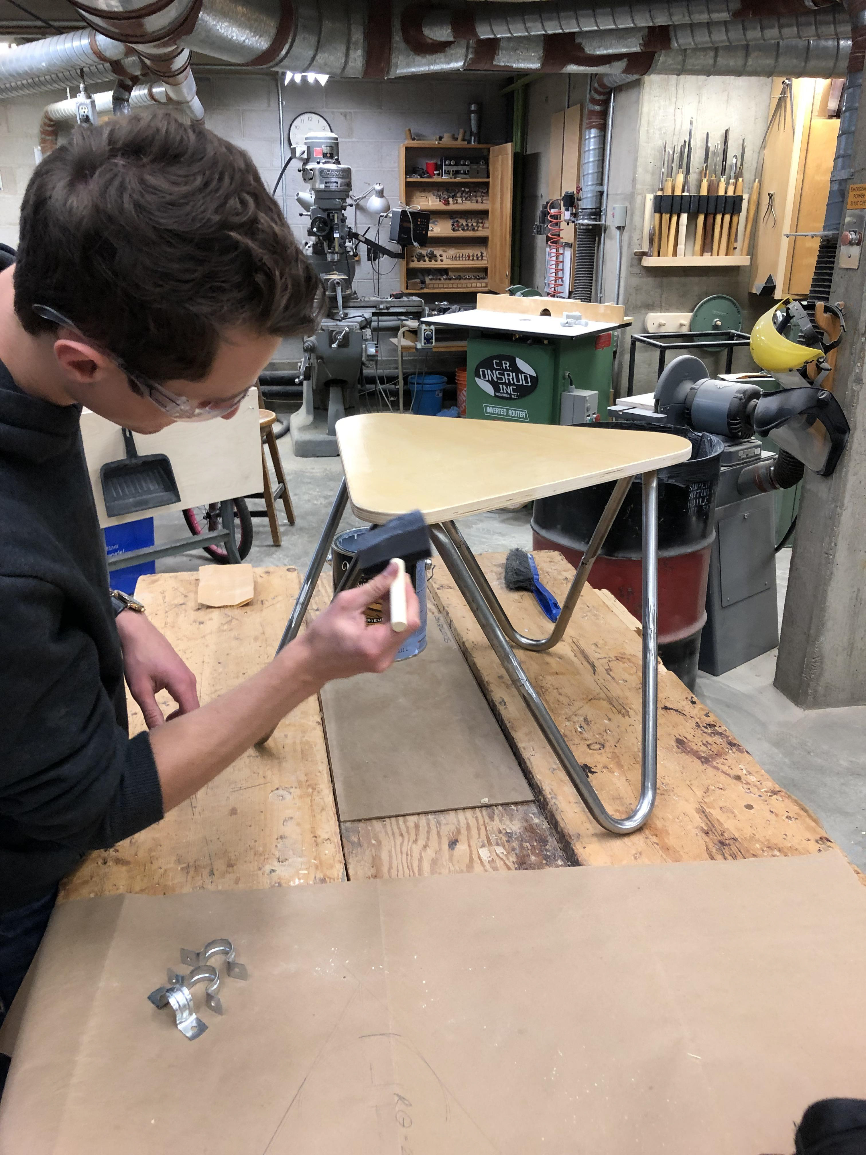 My role in the project included ideation, creating technical plans, and creating the seat portion. I played an instrumental role in bringing the concept to feasible construction, determining details, and explaining forms. I and another student made the plywood seat and assembled the final product.